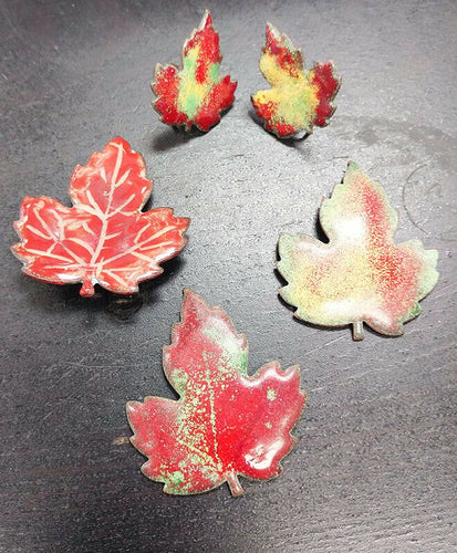 Assorted Copper Tone & Enamel Free Form Maple Leaf Pins & Earrings