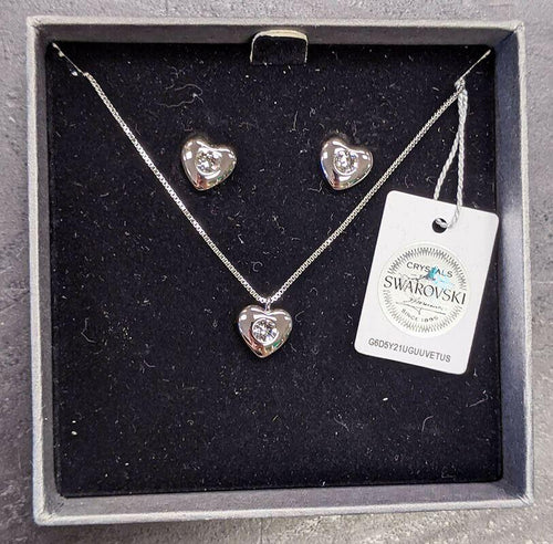 Heart Shaped Crystals by SWAROVSKI Necklace & Stud Earring Set - Silver Tone