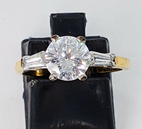 Gold Tone, Classic Setting Ring - Size 7.25 - Rnd & Baguette