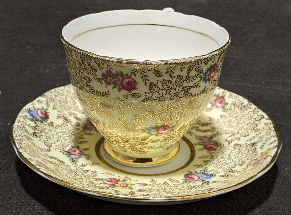Colclough Bone China Tea Cup & Saucer -- Heavy Gold Detail With Flowers