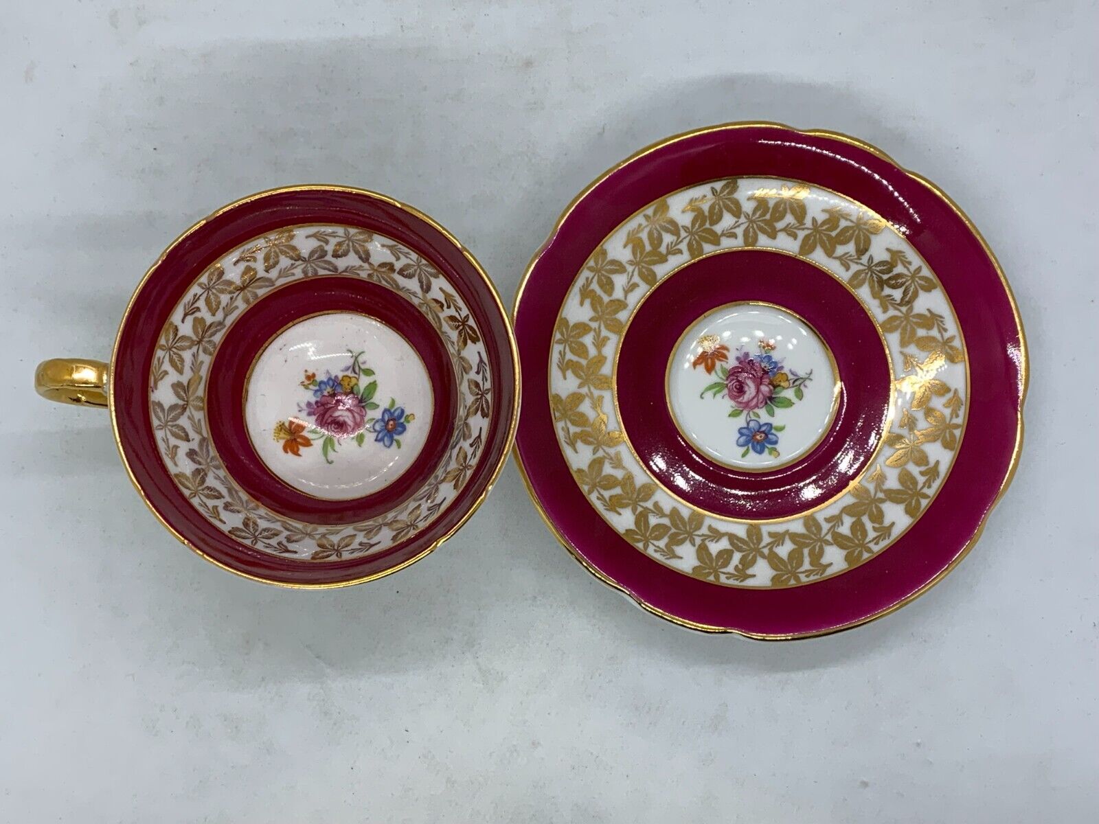 Bergundy, White, & Gold Trimmed - Cup & Saucer