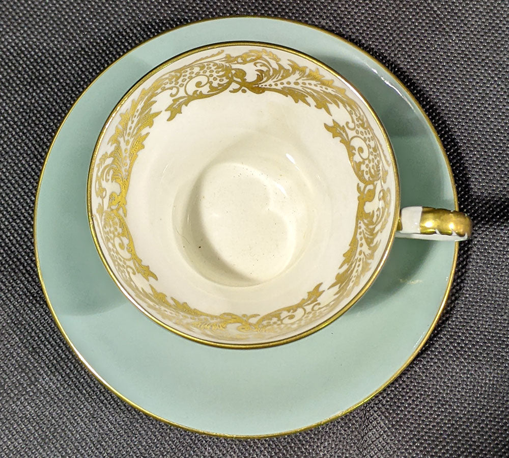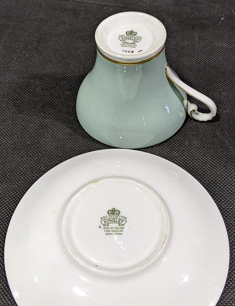 Thank you for viewing our listing for: AYNSLEY Fine Bone China Corset Tea Cup & Saucer - Green & Gold