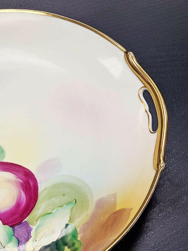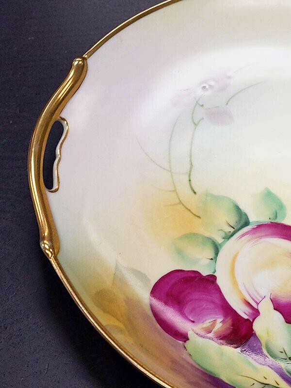 Beautiful Hand Painted Nippon Cake Plate - Gold Rim, Red Fruit & Leaves