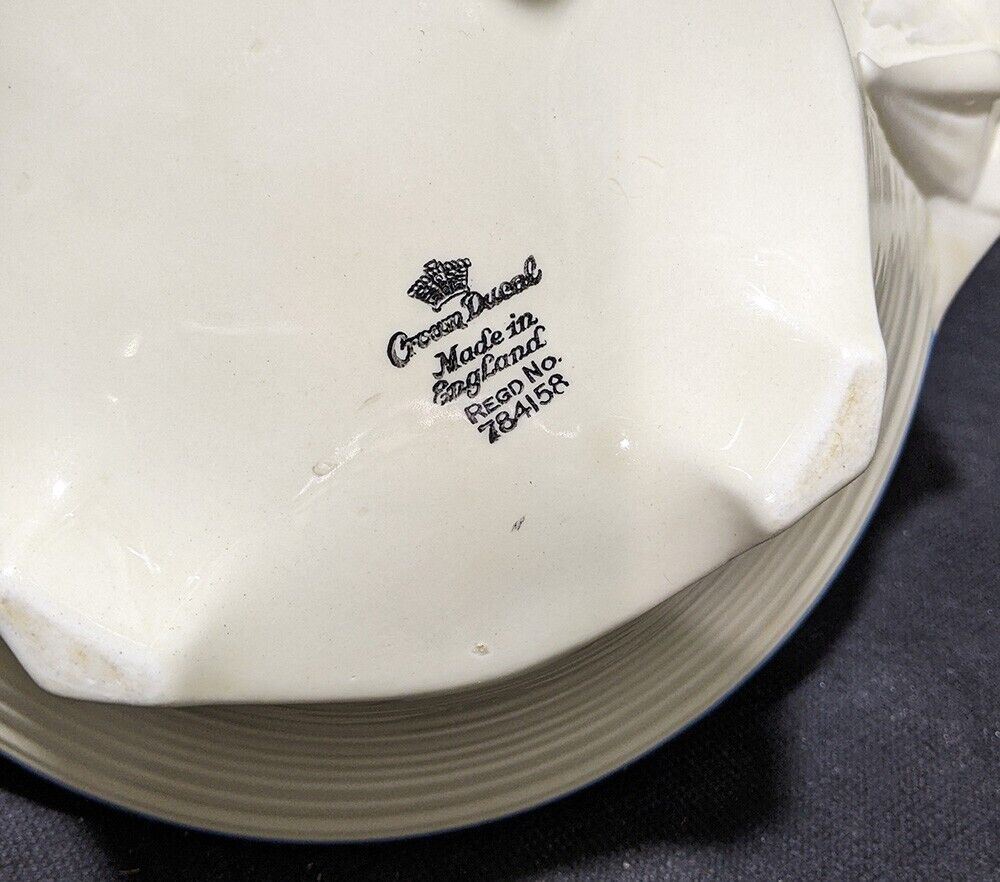 Thank you for viewing our listing for: Vintage Crown Ducal Earthenware Round Covered Vegetable Dish - Blue Rim, Flowers