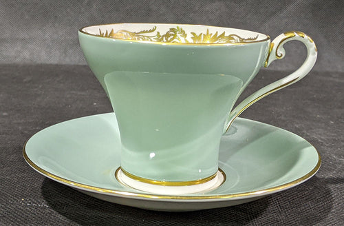 AYNSLEY Fine Bone China Corset Tea Cup & Saucer - Green & Gold