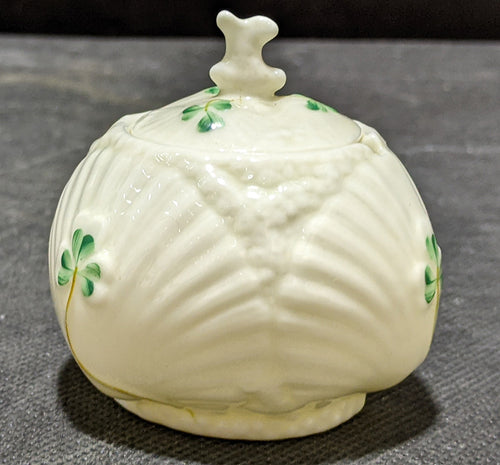 Belleek Green Mark Shamrock Porcelain Jam Pot