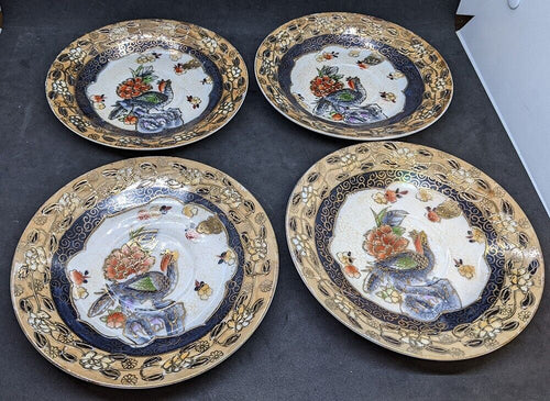 4 Vintage Hand Decorated Saucers - Gold With Black Border