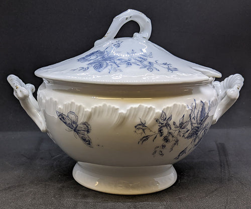 Porcelain Sugar Bowl With Etched Rose Flower & Bird Designs