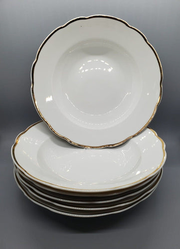 6 Gold Border Rimmed Soup Bowls by C.Mielow, Poland