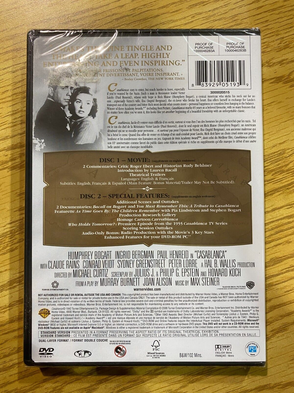 Thank you for viewing our listing for: Casablanca (DVD, 2008, 2-Disc Set, Special Edition)