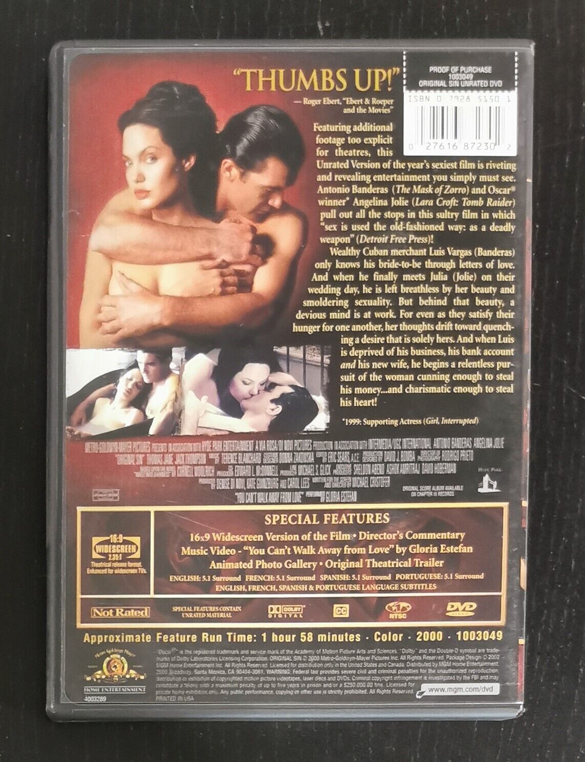 Thank you for viewing our listing for: Original Sin: Unrated Edition - Antonio Banderas, Angelina Jolie (DVD, 1999)