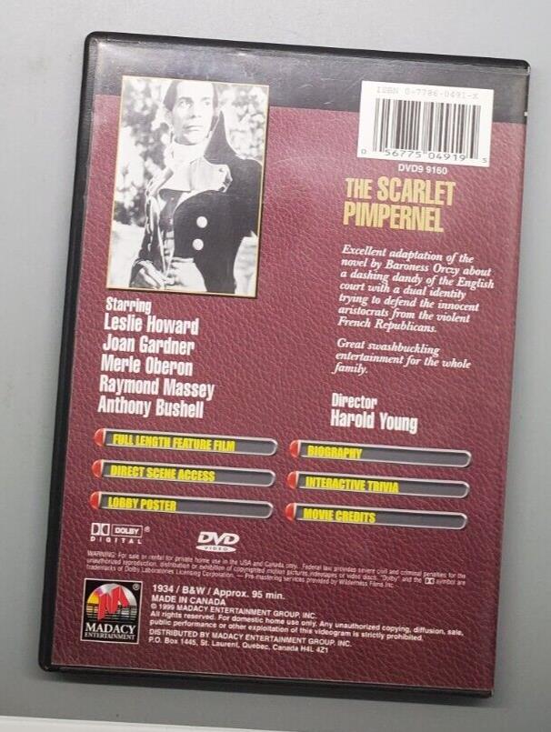 Thank you for viewing our listing for: The Scarlet Pimpernel (DVD, 1999, Hollywood Classics)