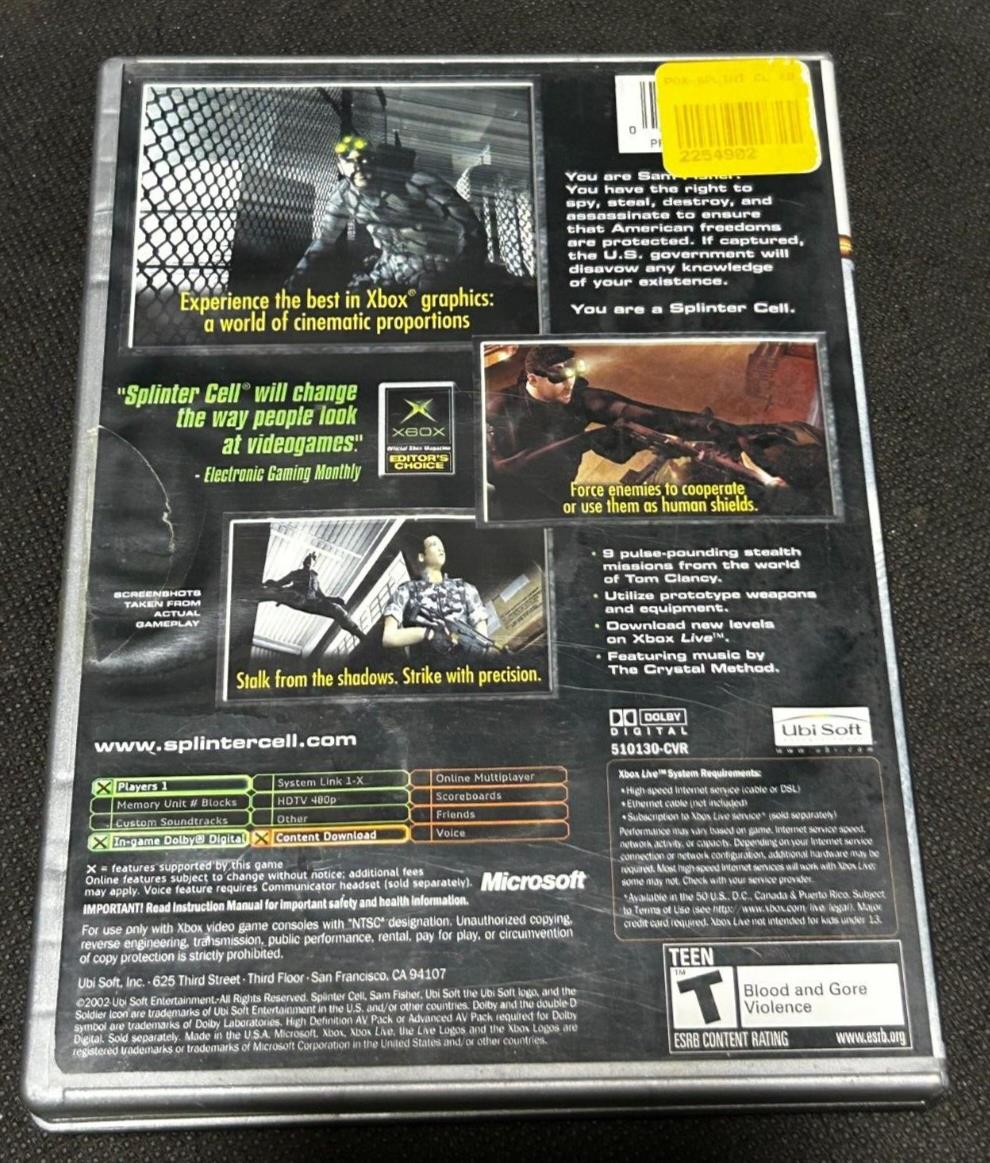 Thank you for viewing our listing for: Xbox Tom Clancy's Splinter Cell Disc Game, EX+
