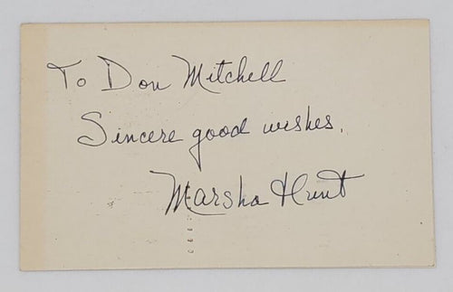 Hollywood Actress Marsha Hunt Autographed Note