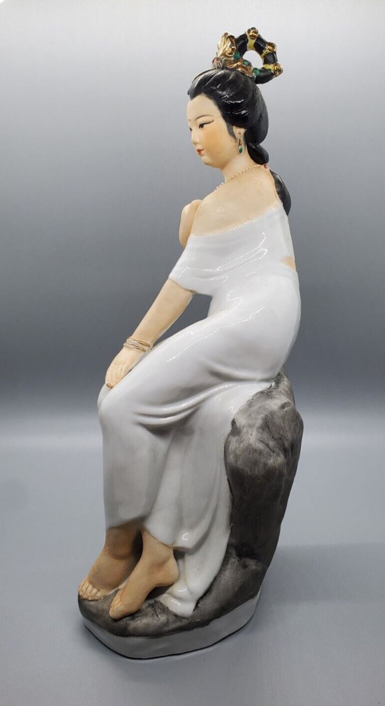 Vintage Provocative Asian Woman Sitting Figurine – Falling Gown