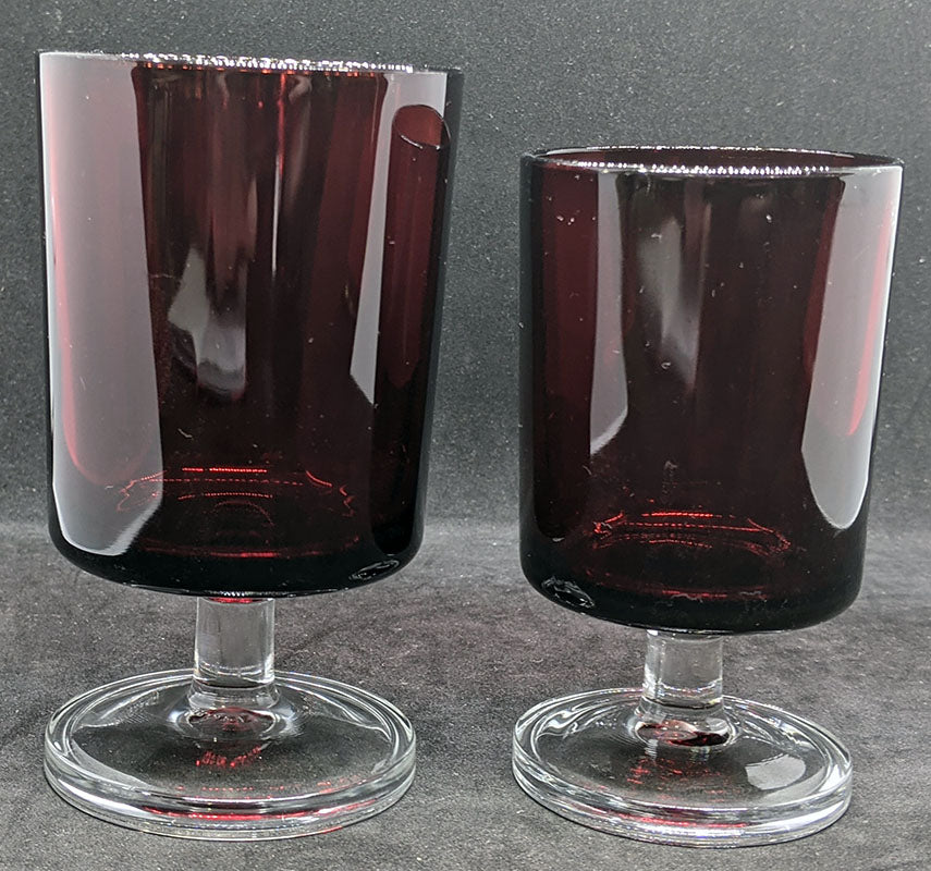 Thank you for viewing our listing for: 5 Cranberry to Clear Glass Pedestal Juice Glasses