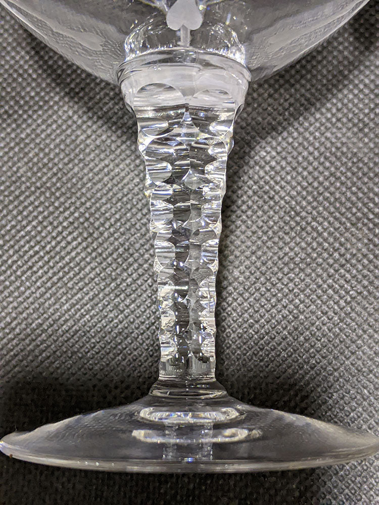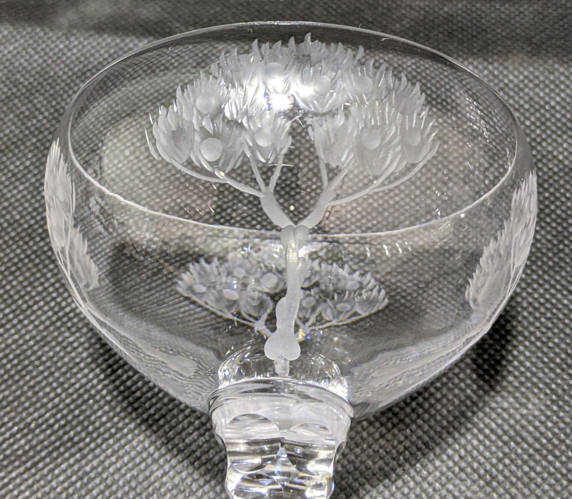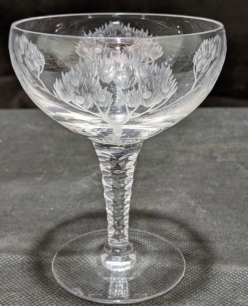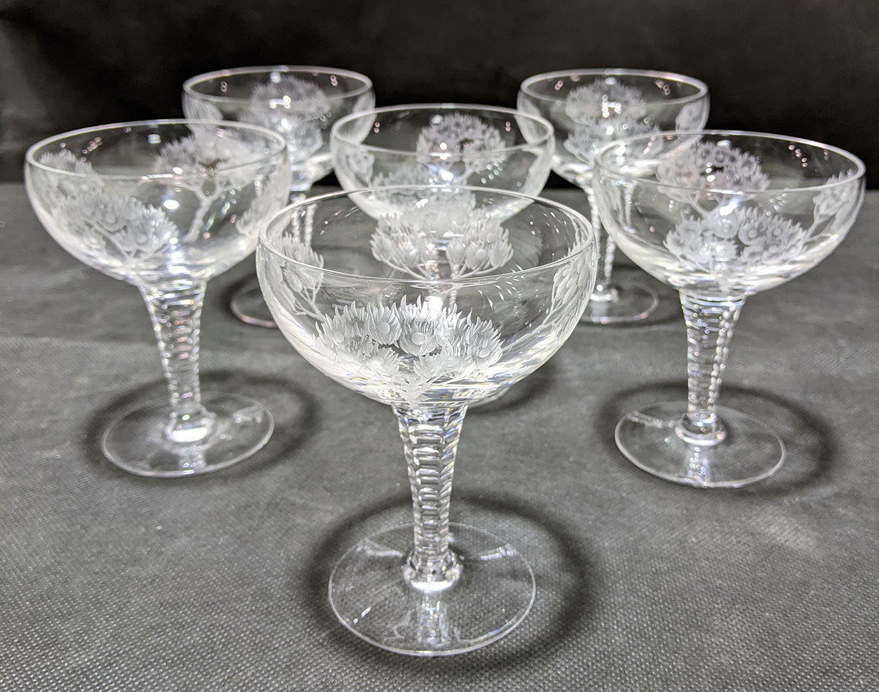 Thank you for looking at our listing for this beautiful set of (8) Stuart etched crystal champagne / tall sherbert glasses.