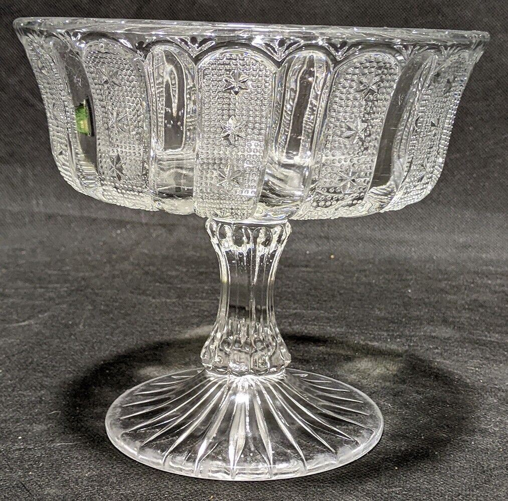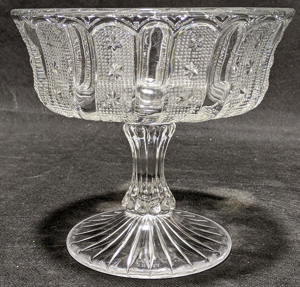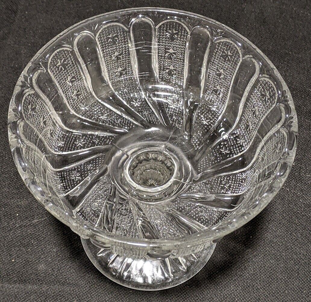 Vintage Pressed Glass Bead & Star Detail Pedestal Compote Dish
