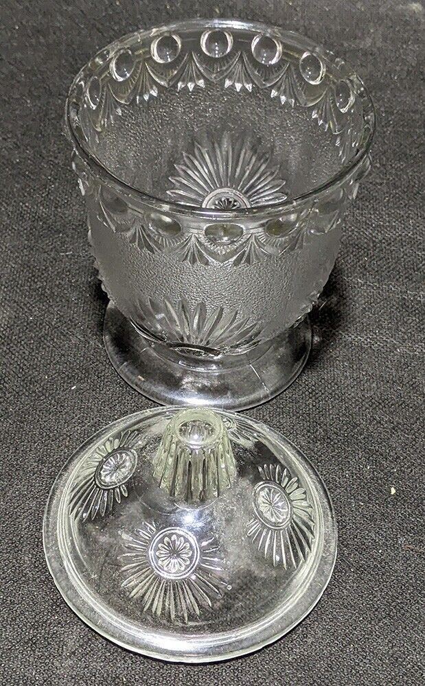 Vintage Pressed Glass Lidded Sugar Bowl - Shell & Jewel - 6 1/2"