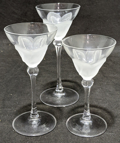 3 Staggered Size Stemware Candle Stick Holders - Frosted Flower Design