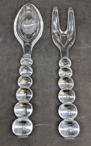 Vintage Hughes Glass Cornflower Salad Serving Set