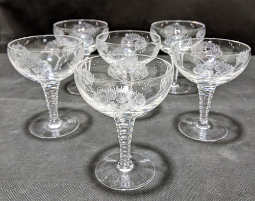 Stuart Crystal Eden Pattern Set of (8) Champagne / Tall Sherbert Glasses 4 1/2"