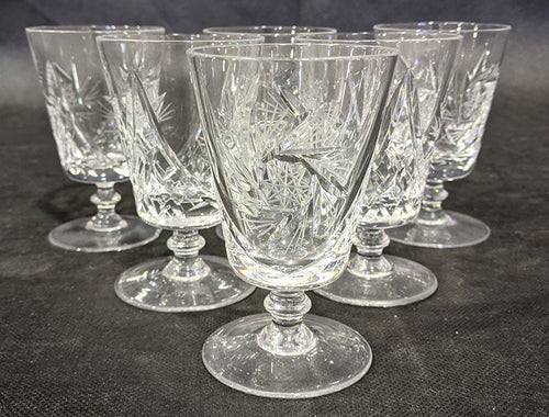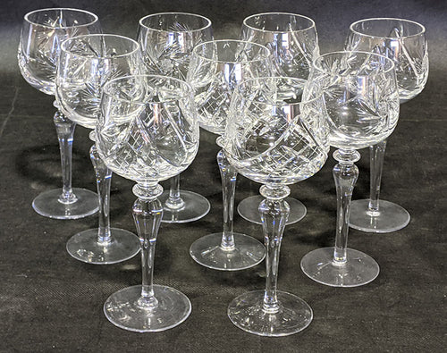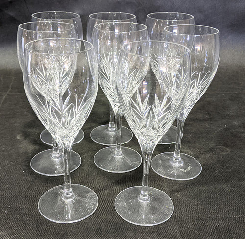 8 Crystal Stemmed Wine Glasses - Unsigned - 7 3/4"