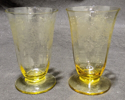 Vintage Yellow Depression Glass Grape & Vine Etched Sherry Glass