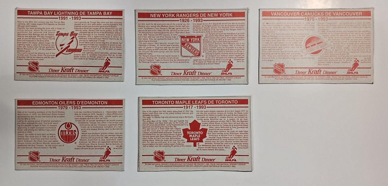 Thank you for viewing our listing on: 1992-93 Kraft Dinner Hockey Hand Cut Team Collectors Cards Lot of 5
