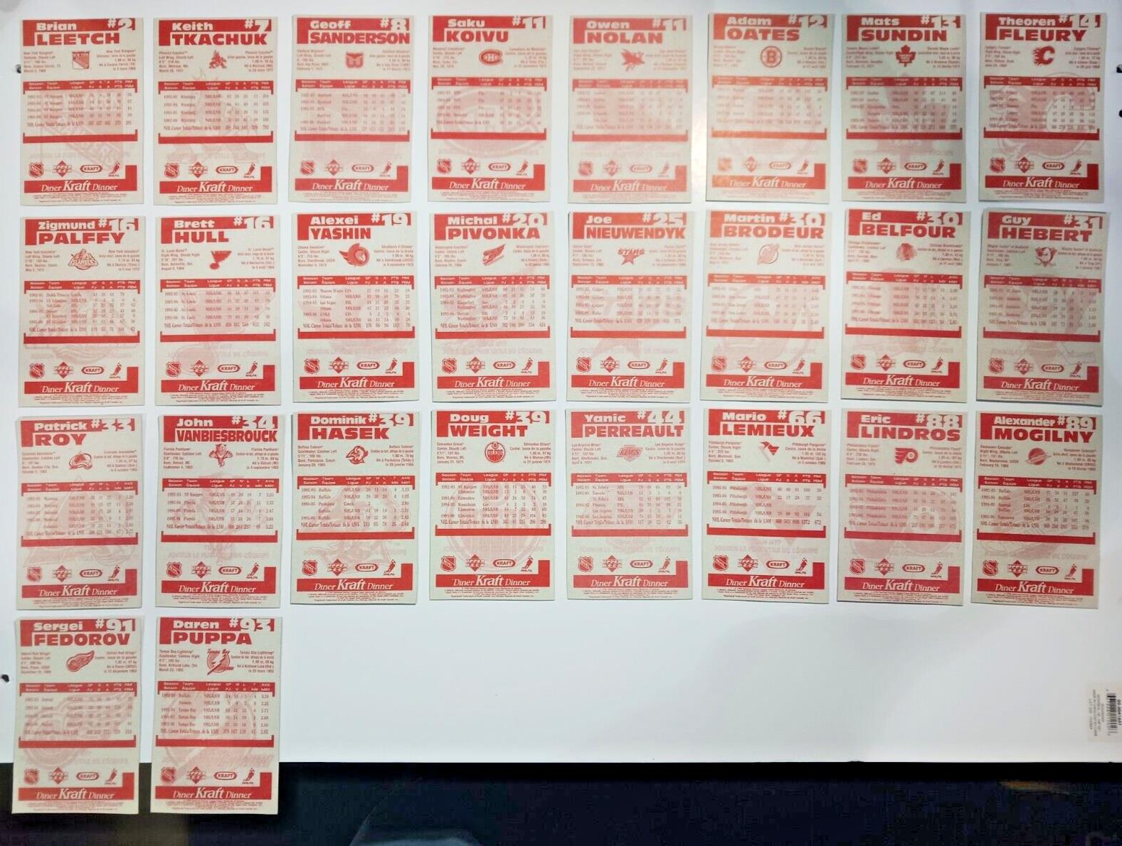 1996-97 Kraft Dinner Hockey Hand Cut Collectors 3 1/2 x  5 1/4" Cards Lot of 26