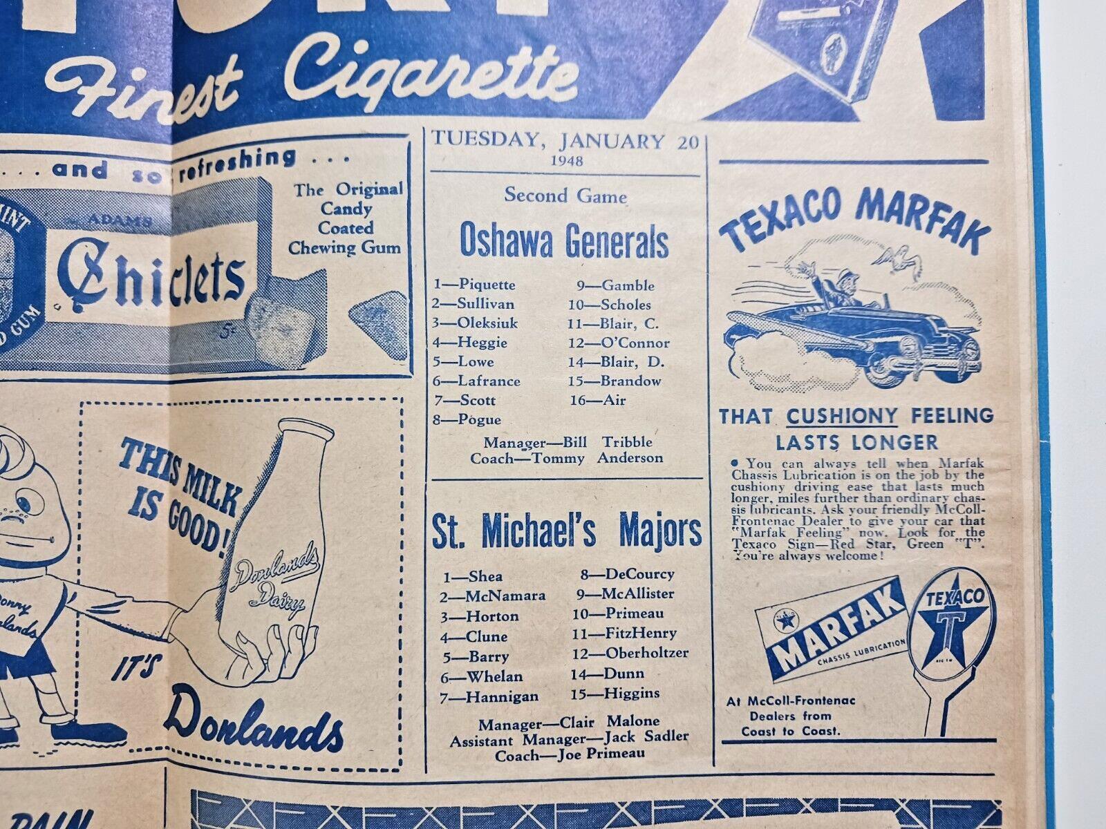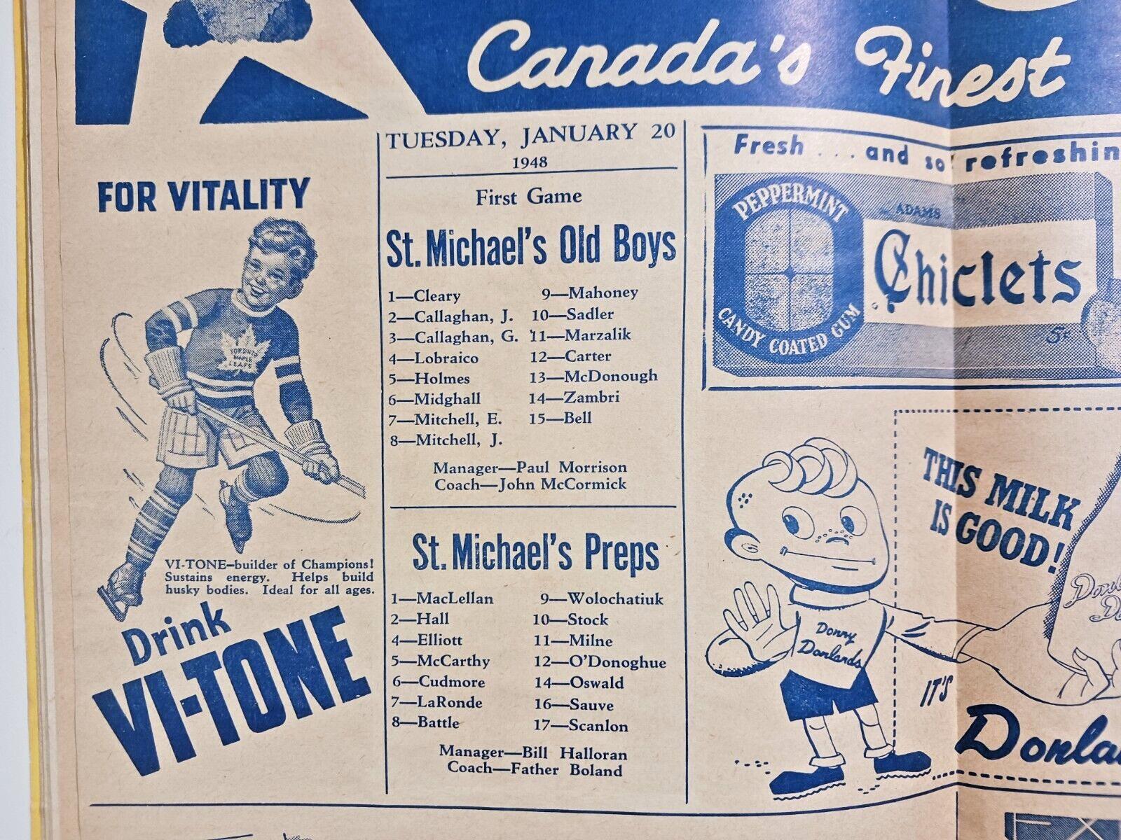 1948 St Michaels Majors, Tim Horton 1st Year, Maple Leaf Hockey Program