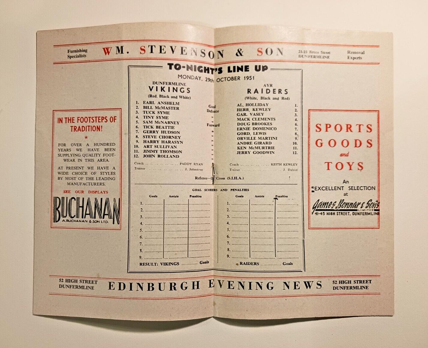 Thank you for viewing our listing on: 1951 Oct. 29th Canada Cup Hockey Program Vikings vs Raiders Dunfermline Ice Rink