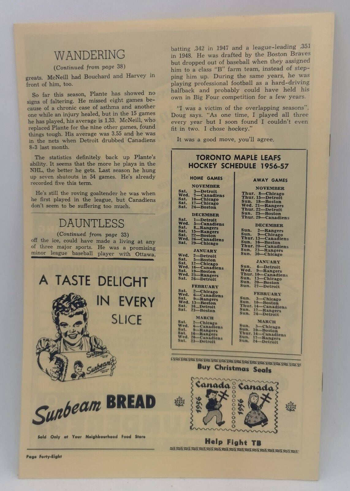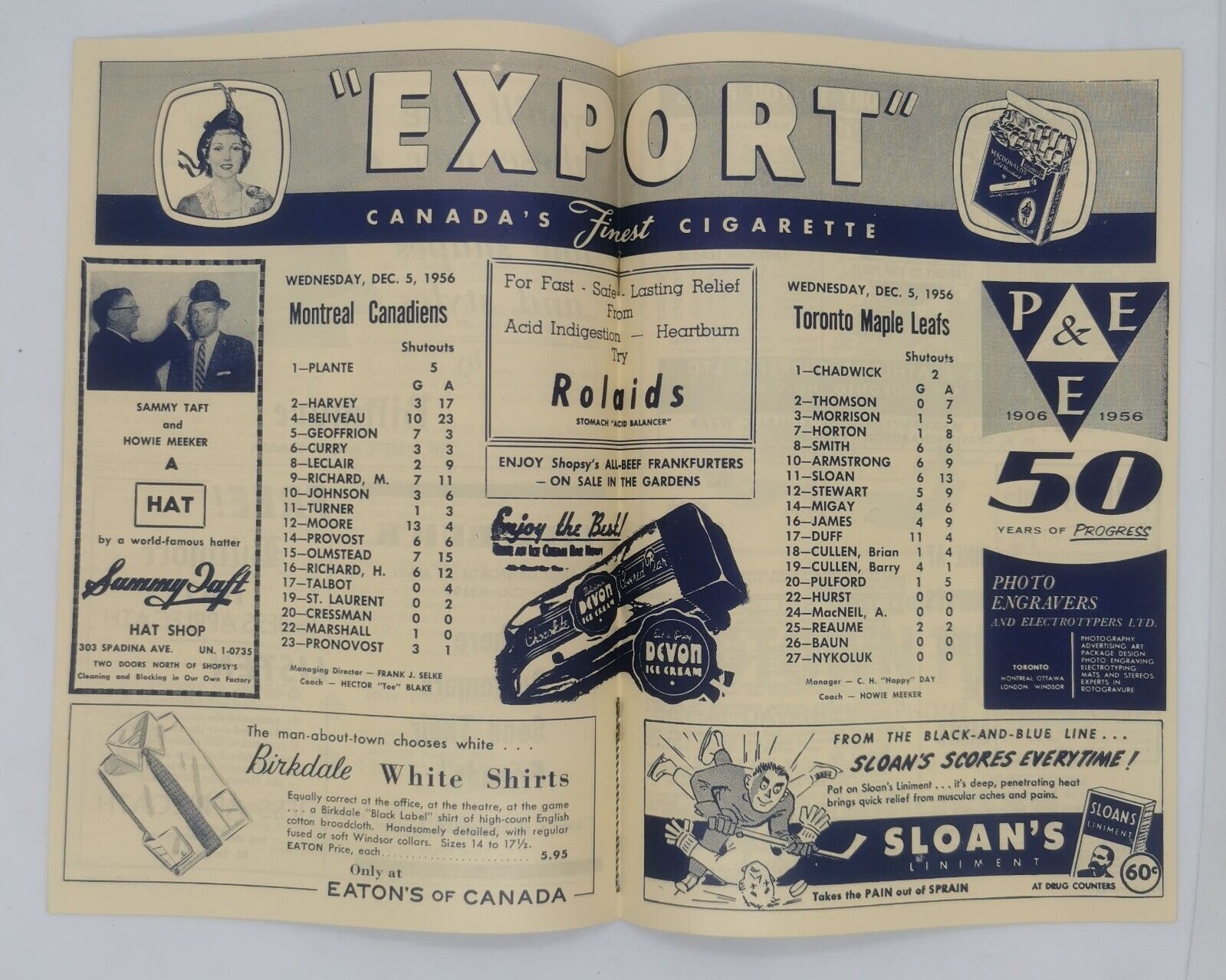 1956 Dec 5 Montreal Leaf's Programs Line Up Pages Richard, Horton, Beliveau