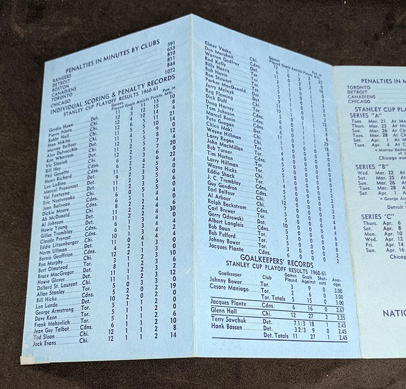 Thank you for viewing our listing for: 1960-61 National Hockey League Final Statistics Pamphlet