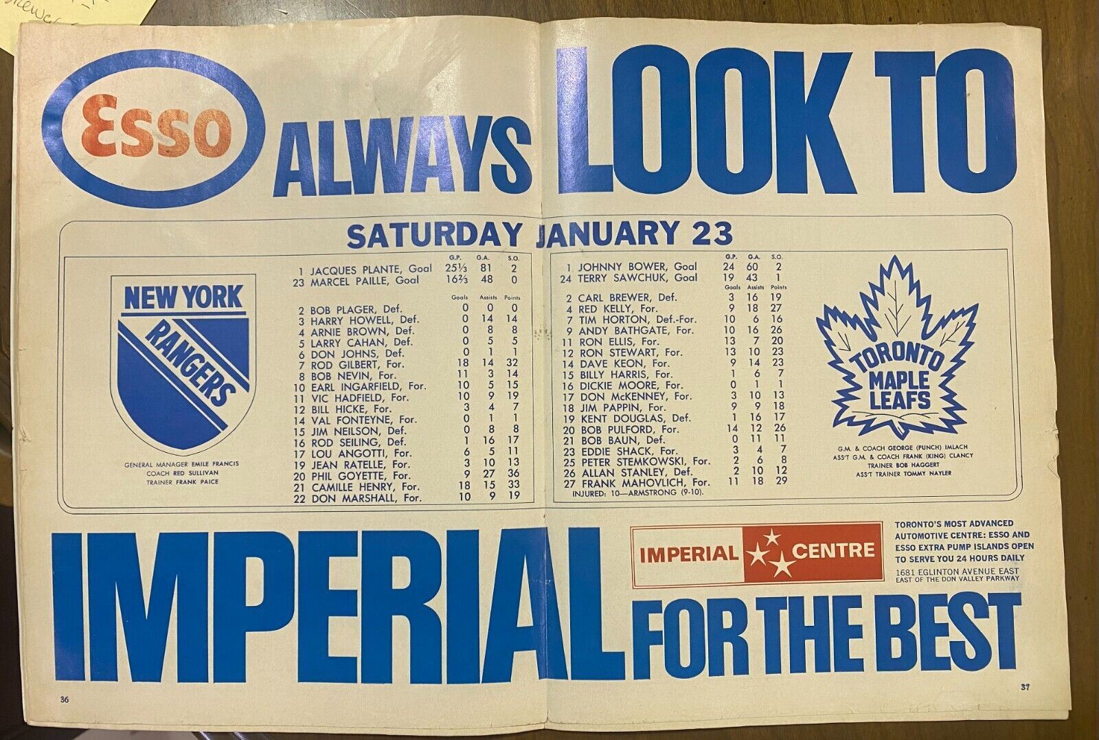 1964-65 Jan 23 Maple Leafs Program Ranger Carl Brewer Cover