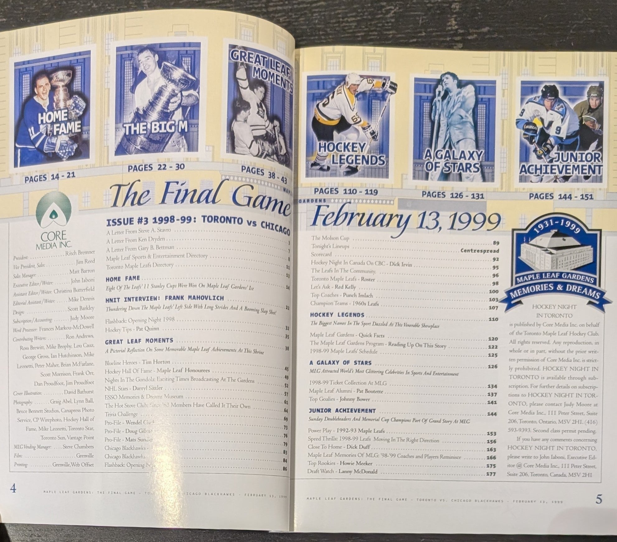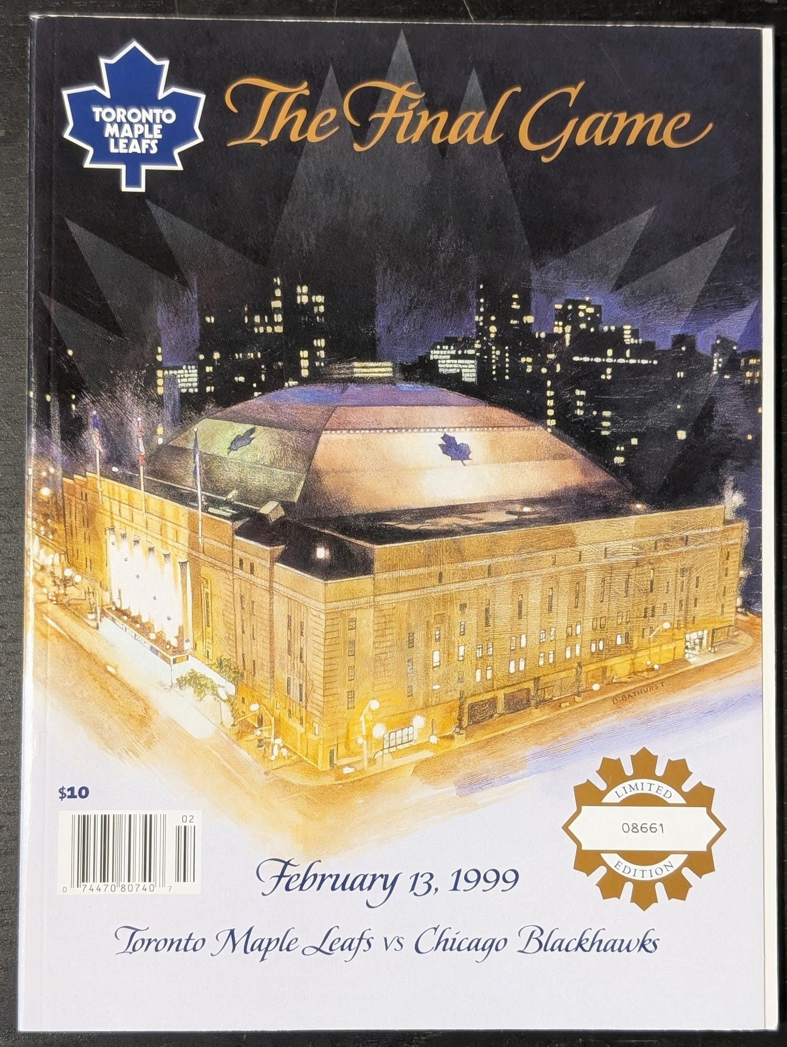 Thank you for viewing our listing for: 1999 Toronto Maple Leafs vs Blackhawks The Final Game Program Limited 08661