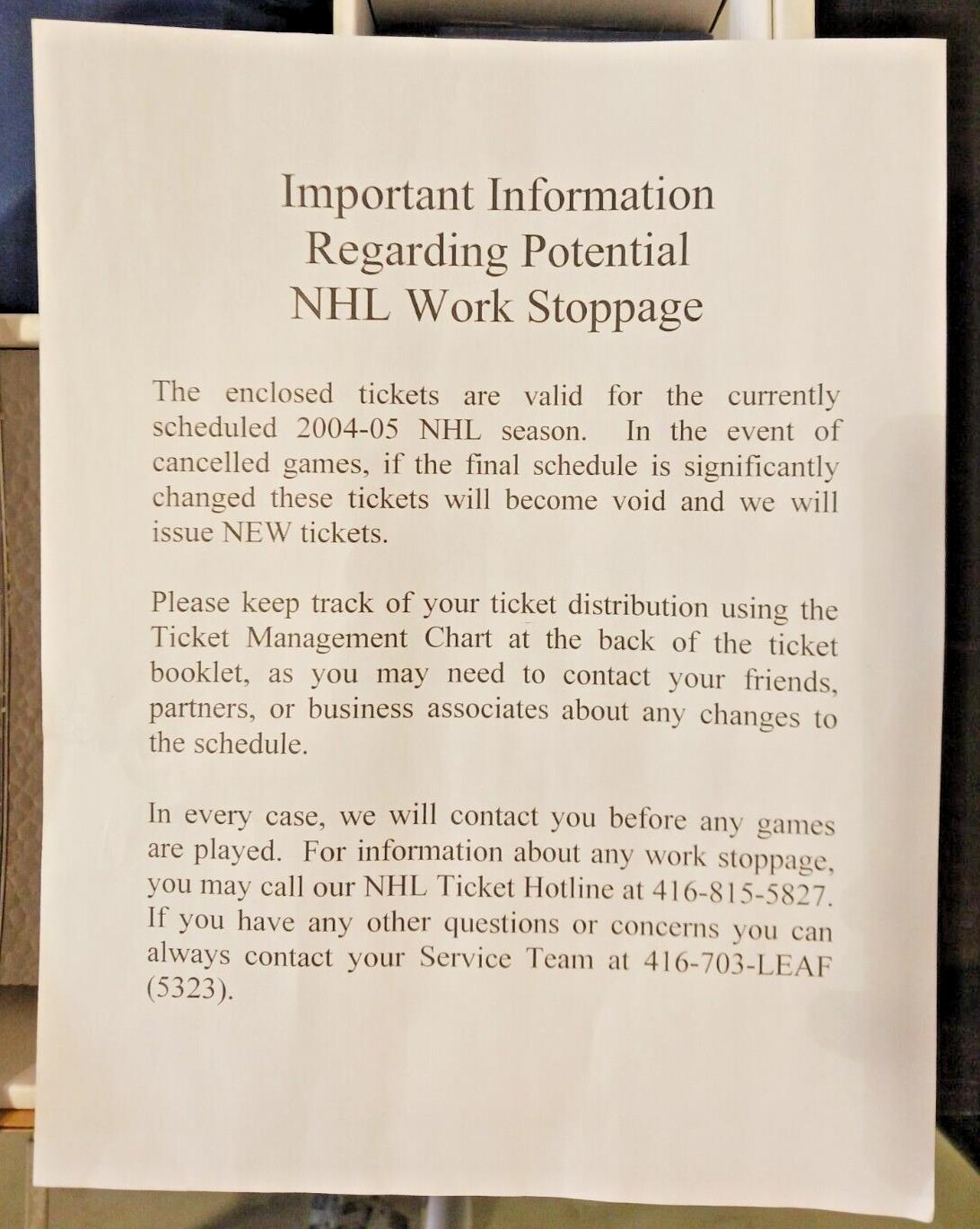 2004-05 Toronto Maple Leafs Lockout Season Tickets Care Box