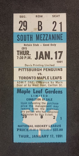 1991 Maple Leafs vs Penguins Tickets Stub