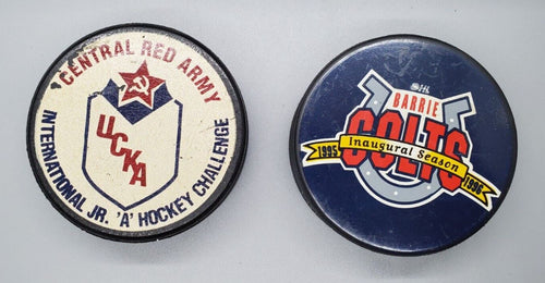 Hockey Pucks Lot - Barrie Colts & Central Red Army