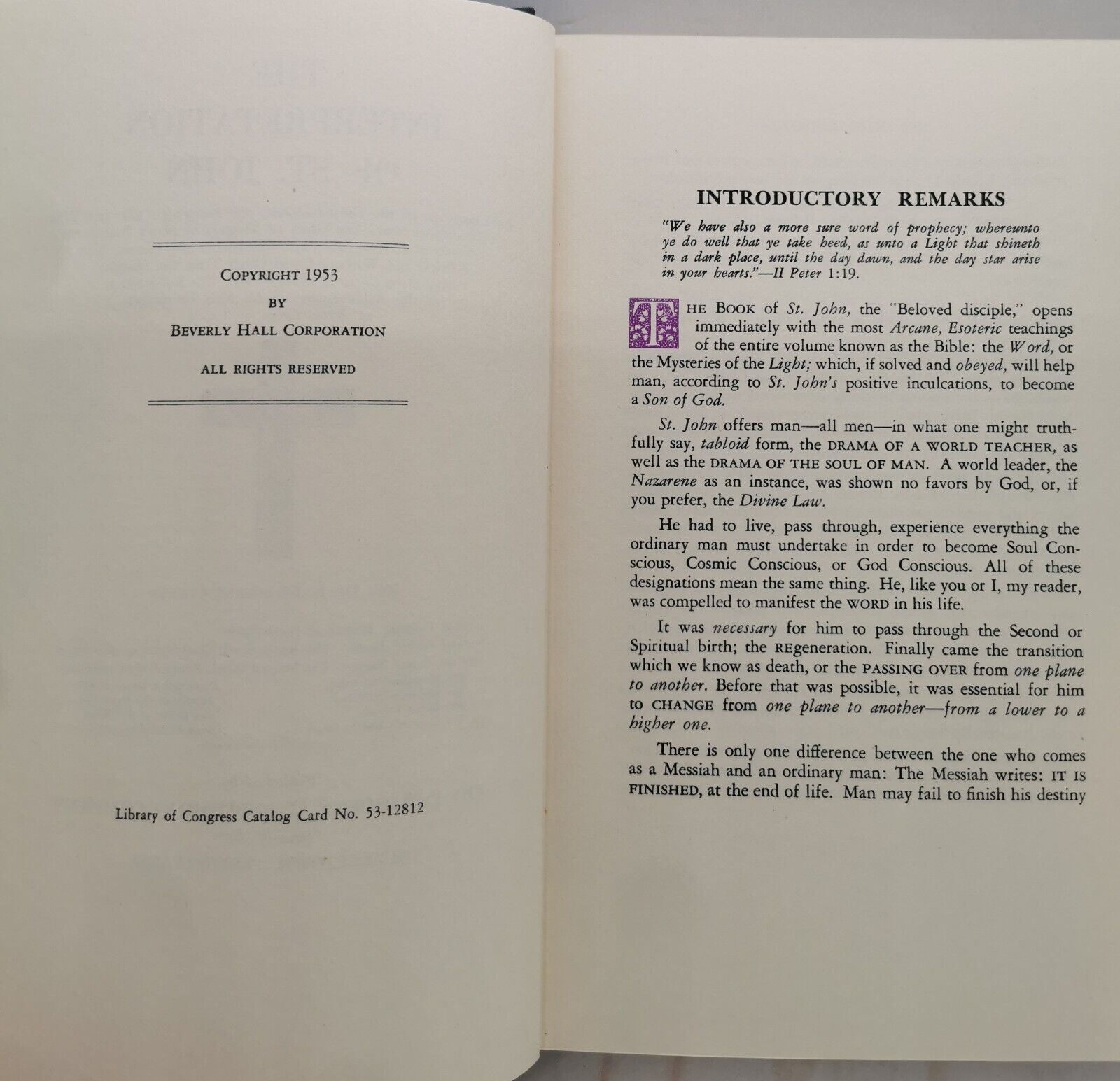1953s The Interpretation Of St. John by Rev. Dr. R. Swincurne Clymer Book