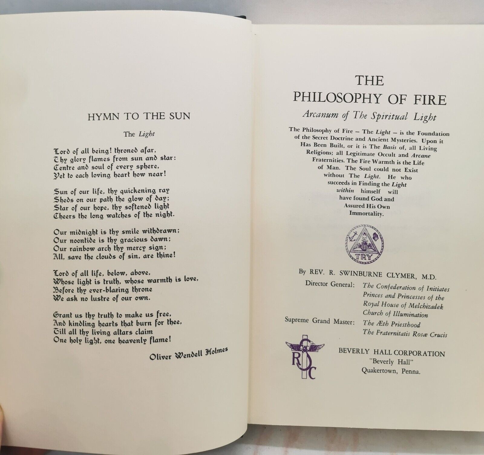 1964s The Philosophy Of Fire The Spiritual Light by Swincurne Clymer Book