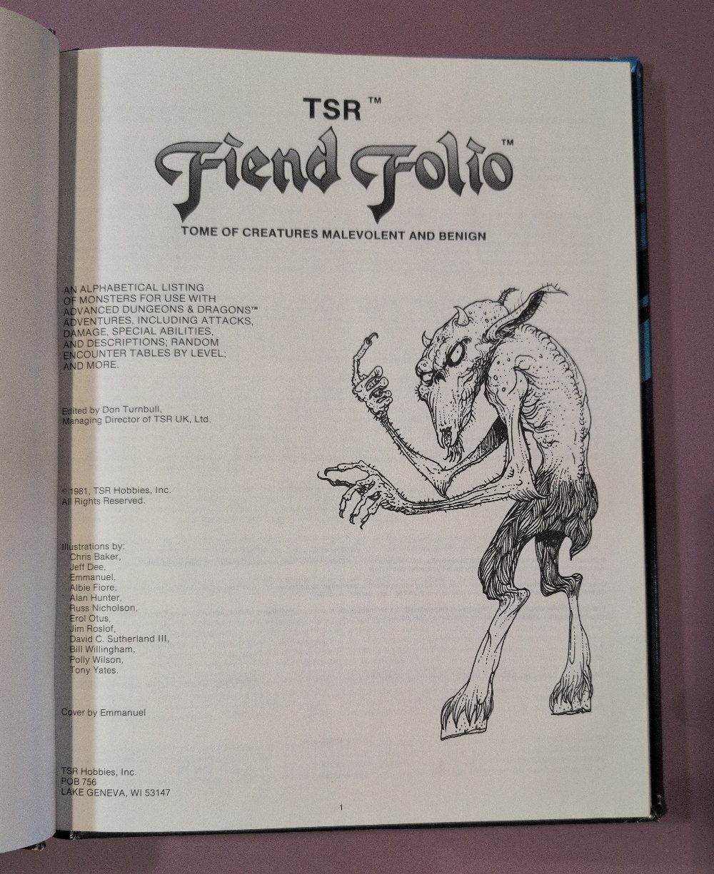 Thank you for viewing our listing for: 1981 TSR Fiend Folio Advanced D&D Tome of Creatures Malevolent & Benign