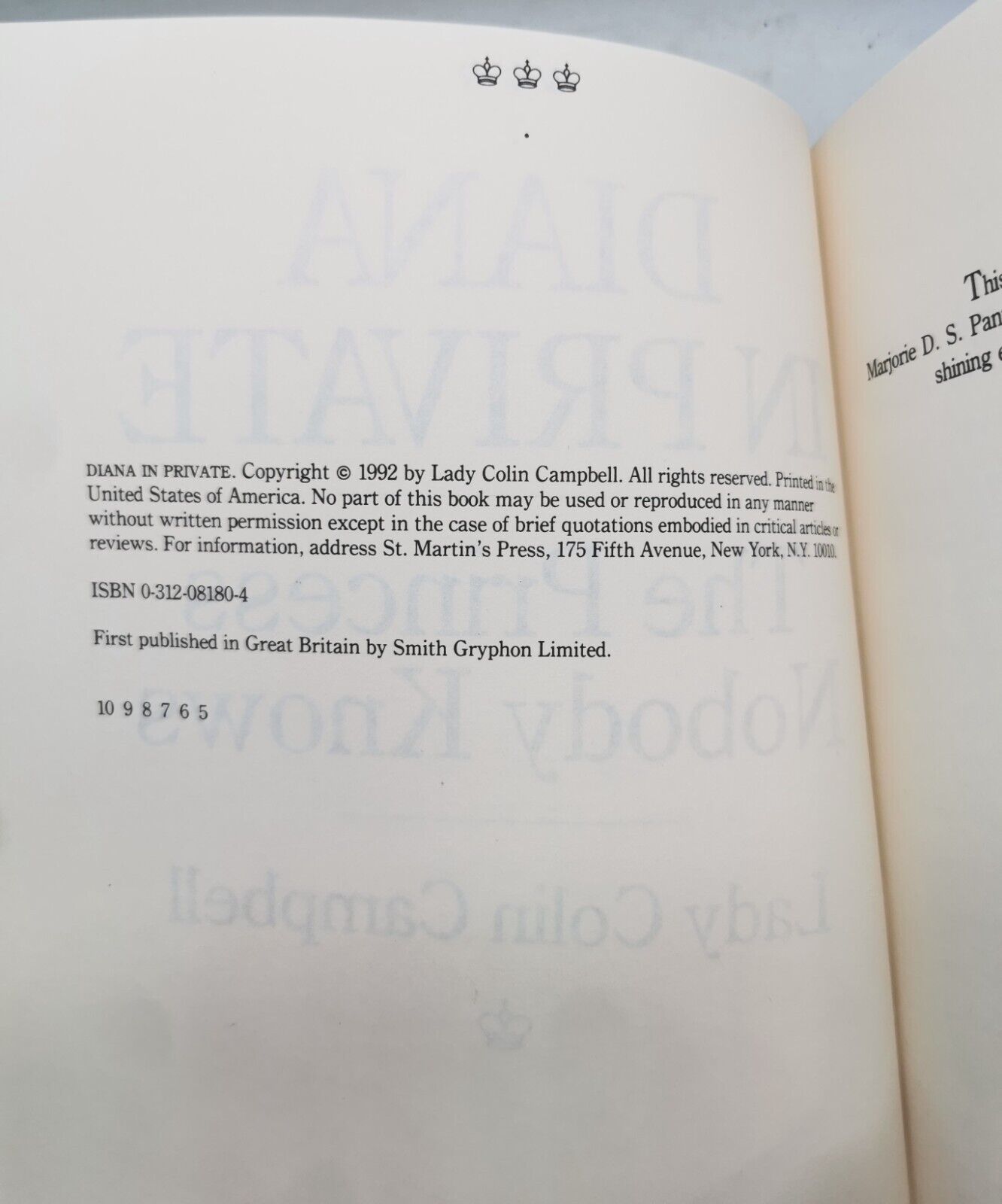 1992 Diana In Private The Princess Nobody Knows by Lady Coline Campbell