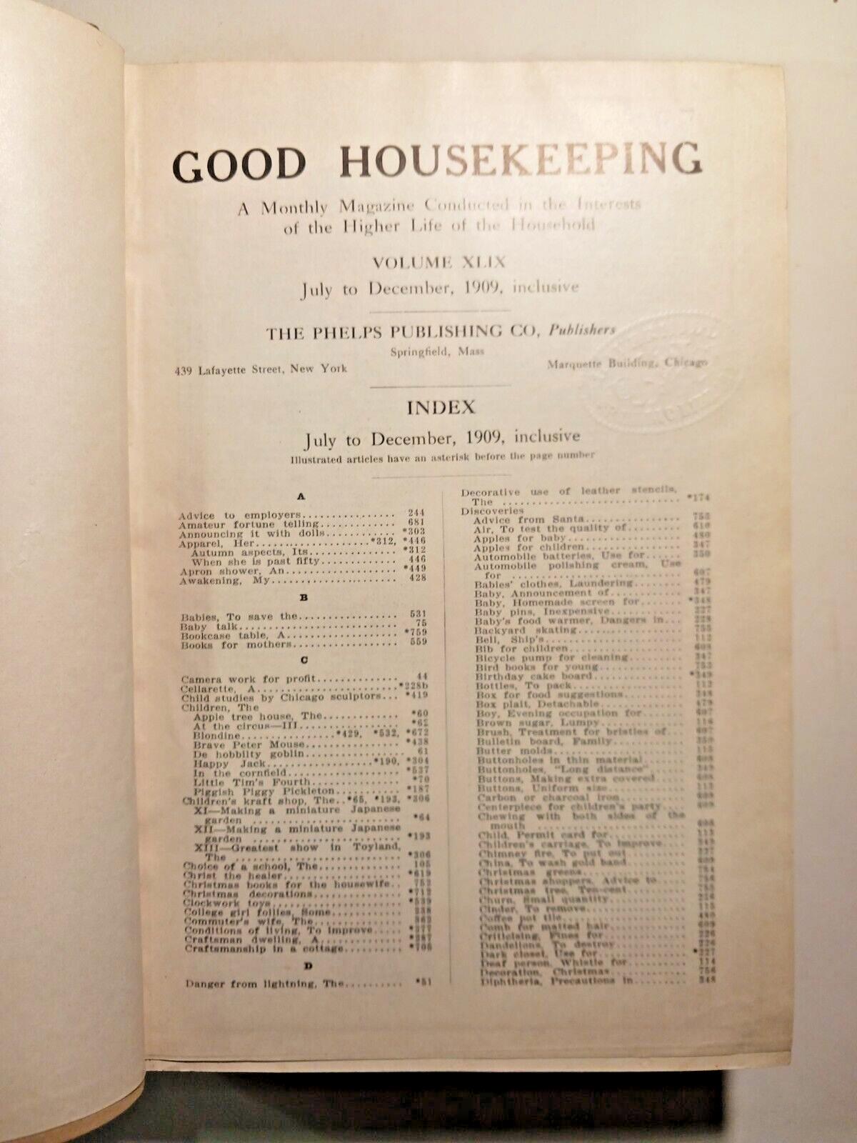 Good Housekeeping Vol. 49 July-Dec. 1909 Hardcover 7 1/2" x 10" Book