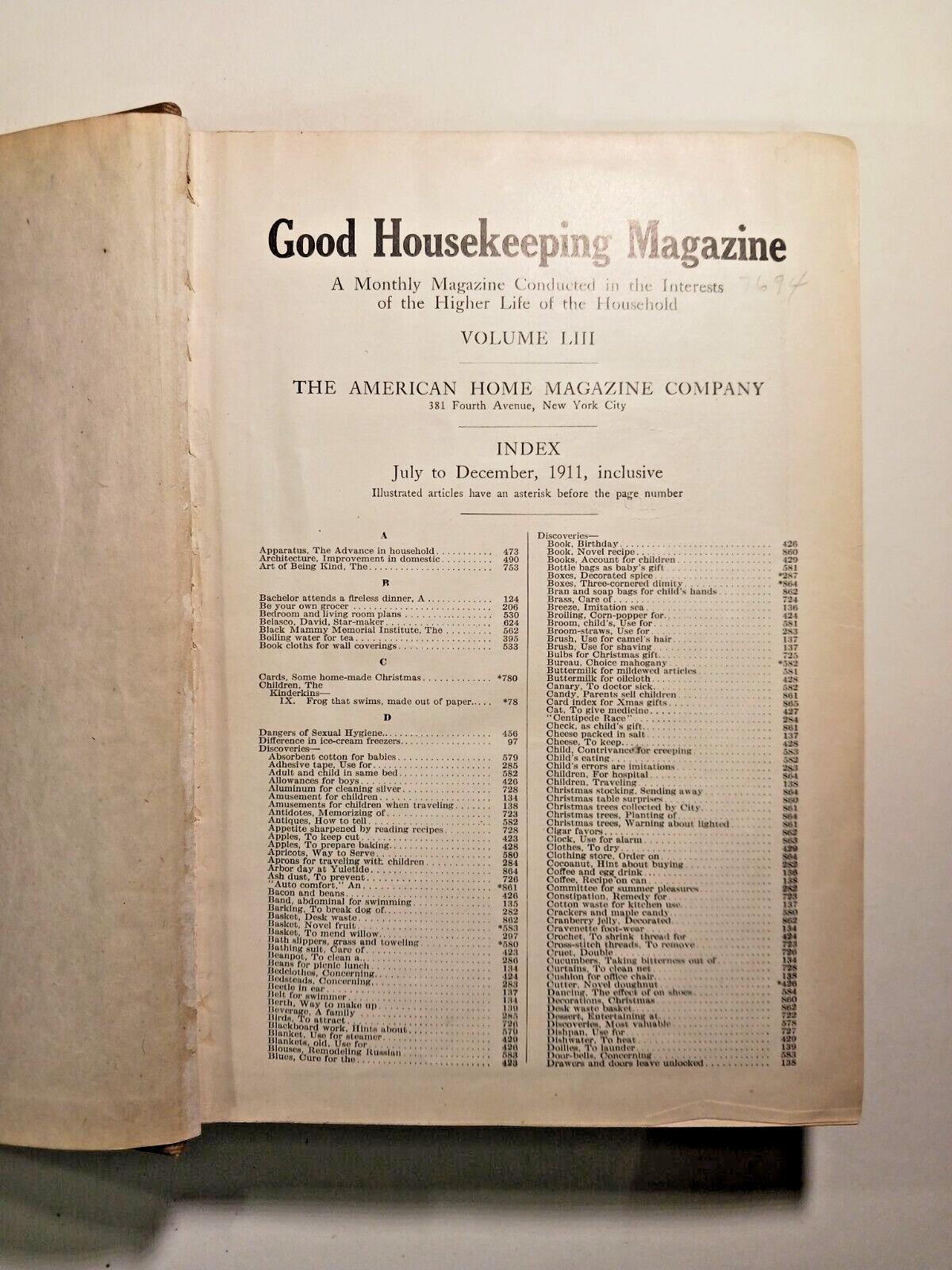 Good Housekeeping Vol. 53 July-Dec. 1911 Hardcover 7 1/2" x 10" Book