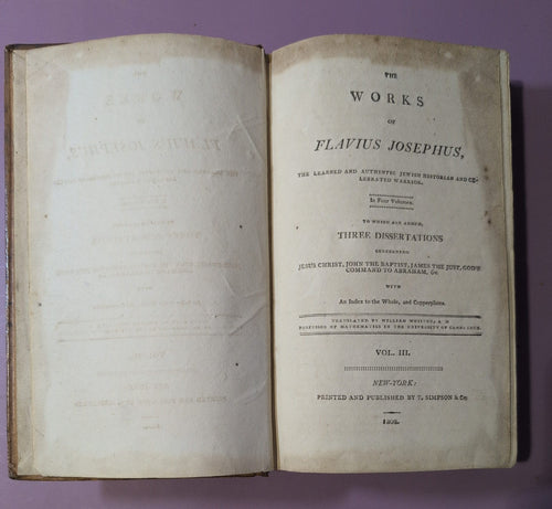 The Works of Flavius Josephus Vol. III 1808 T. Simpson & Co. New York
