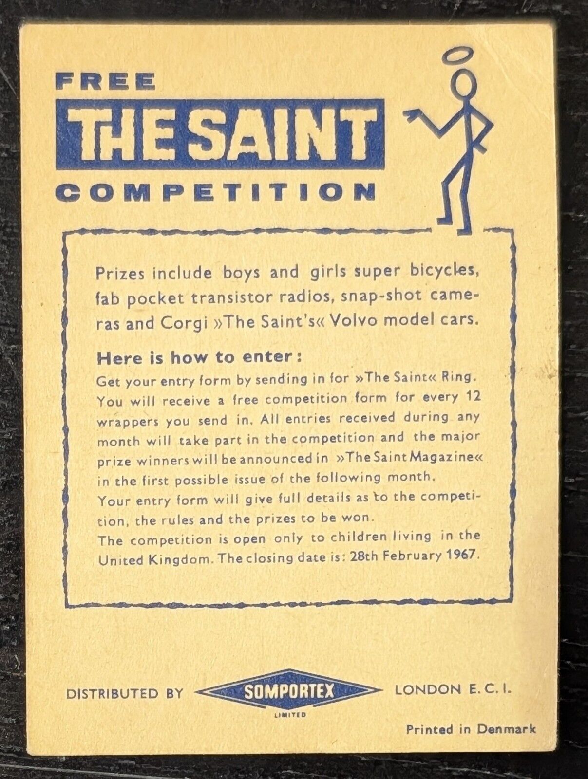 Thank you for viewing our listing for: 1966 Roger Moore The Saint San Portex Card #47 in a series of 72