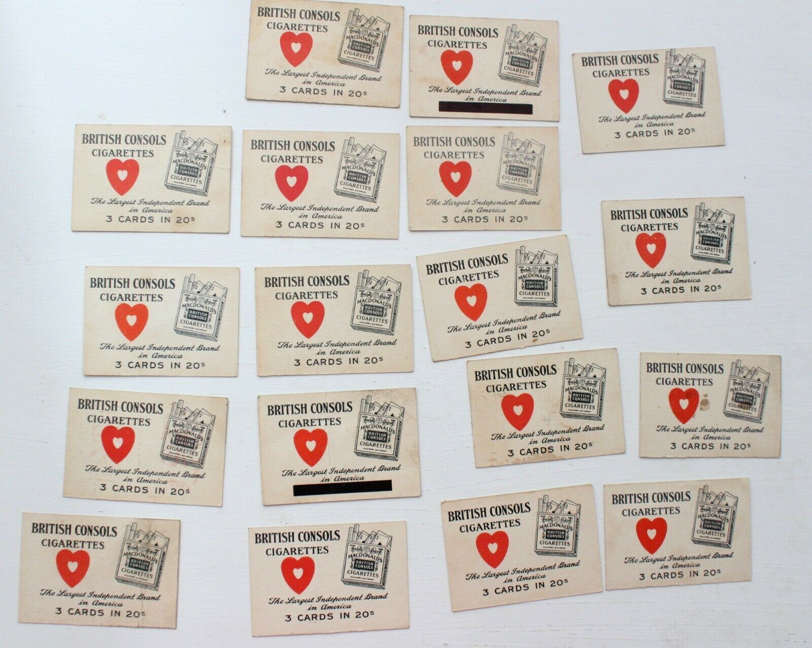 Lot of 1930's British Consols or Brier Tobacco Cards w/ Heart Backs