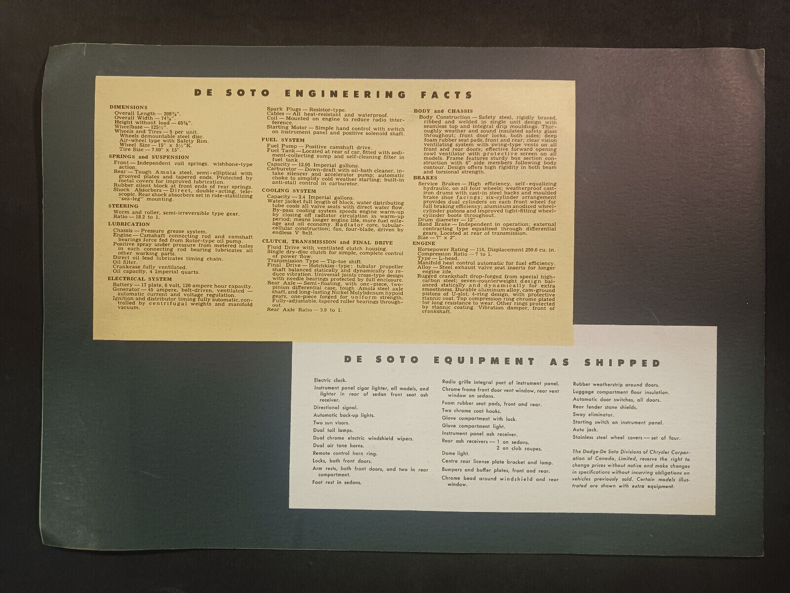 1940's - 50's DeSoto Canada's Distinctive Automobile Canadian Variety Brochure