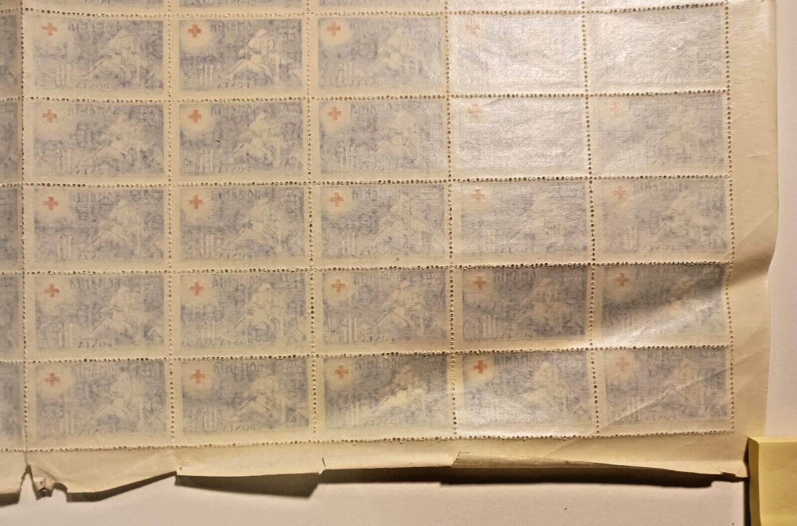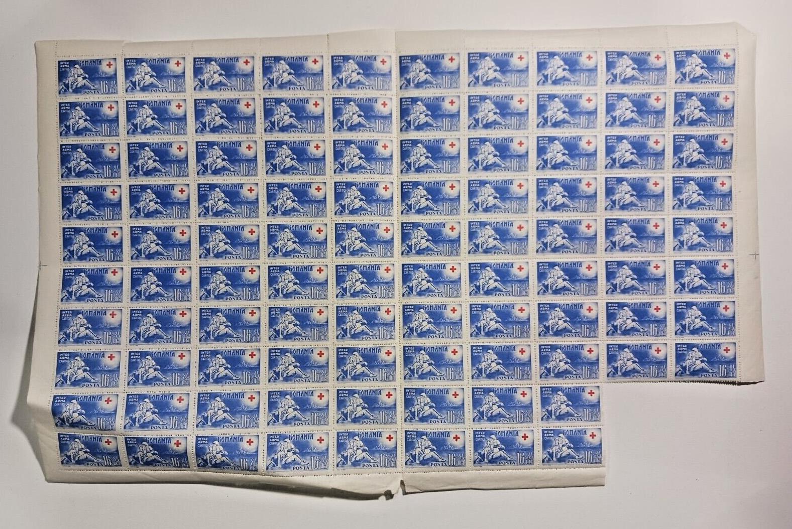 1941 Romania Red Cross 10x10 Stamp Sheet (Missing 4) Inter Arma Caritas 16+84
